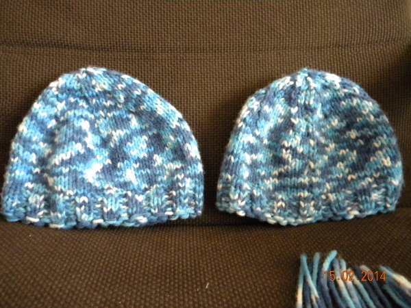 Hozzávalók: kb. 10 (20) dkg melírozott kék fonal, 4-es kötőtű.